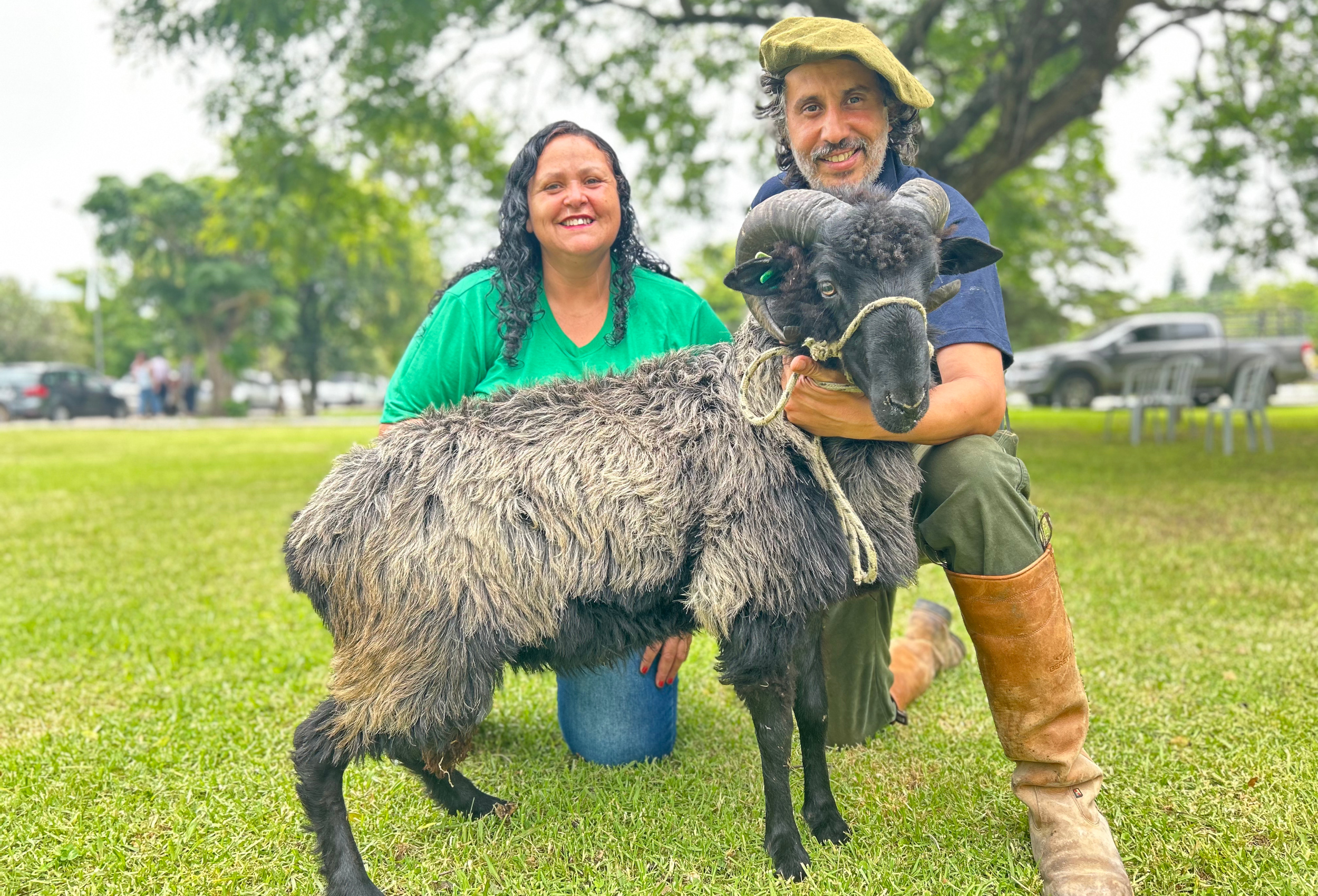 Depois de 17 horas de estrada, os proprietários da Cabanha e Criadeiro Guerreiros dos Campos chegaram a Bagé (RS) para participar da 18ª Agrovino. O casal saiu de Morretes, no Paraná, e percorreu cerca de 1,6 mil quilômetros. Neste ano, trouxe apenas um carneiro para a feira, que passou pela avaliação dos jurados nesta sexta-feira (16).
