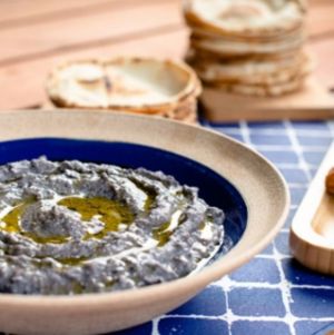 Homus de feijão preto e azeitonas