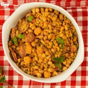 Cozinhe o Feijão Vermelho Meu Biju em uma panela de pressão. Depois, divida essa quantidade em duas porções. Processe uma delas, misturando com os demais ingredientes. Acrescente a outra parte do feijão, faça bolinhas e frite em óleo quente. Retire o excesso de gordura com papel-toalha. Sirva.