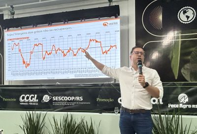 Além da análise de mercado, o fórum também abordou desafios relacionados à infraestrutura e à logística para o agronegócio brasileiro. A programação incluiu a palestra “Da adversidade à vantagem competitiva: o novo ciclo estratégico do TERMASA”, apresentada pelo vice-presidente da Cooperativa Central Gaúcha Ltda. (CCGL) e dos terminais portuários Termasa-Tergrasa, Guillermo Dawson Jr.