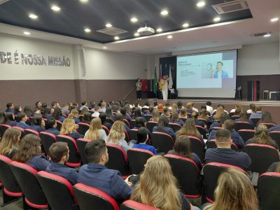O Conexão São João: Saber e Cuidar foi realizado na manhã de segunda-feira (19) no auditório do Centro de Operações em Passo Fundo/RS, dentro da programação do Janeiro Branco e contou com a participação da farmacêutica Luciene Scherer, profissional com uma trajetória híbrida que conecta ciência, educação corporativa e impacto social. A palestra ocorreu de forma presencial para o administrativo de Passo Fundo/RS e on-line para o administrativo de Gravataí/RS e coordenadores da Rede, ampliando o alcance do conteúdo para diferentes áreas da empresa.