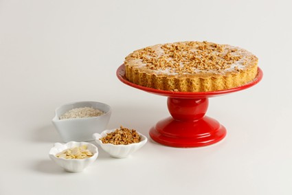 Coloque a massa numa forma untada com Azeite Nova Oliva e leve para assar em forno preaquecido a 180° C por meia hora. Assim que esfriar, decore com as amêndoas trituradas e sirva em seguida.