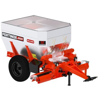 Outro lançamento da empresa na feira é o Fertinox 2200 Multiuso, distribuidor de sólidos desenvolvido para adubação de precisão. A máquina foi projetada como uma solução 3 em 1, permitindo a aplicação de composto orgânico, adubo granulado e calcário. Com kit de fácil troca e esteira de colmeia, o equipamento busca ampliar a versatilidade no uso e otimizar o aproveitamento de insumos.