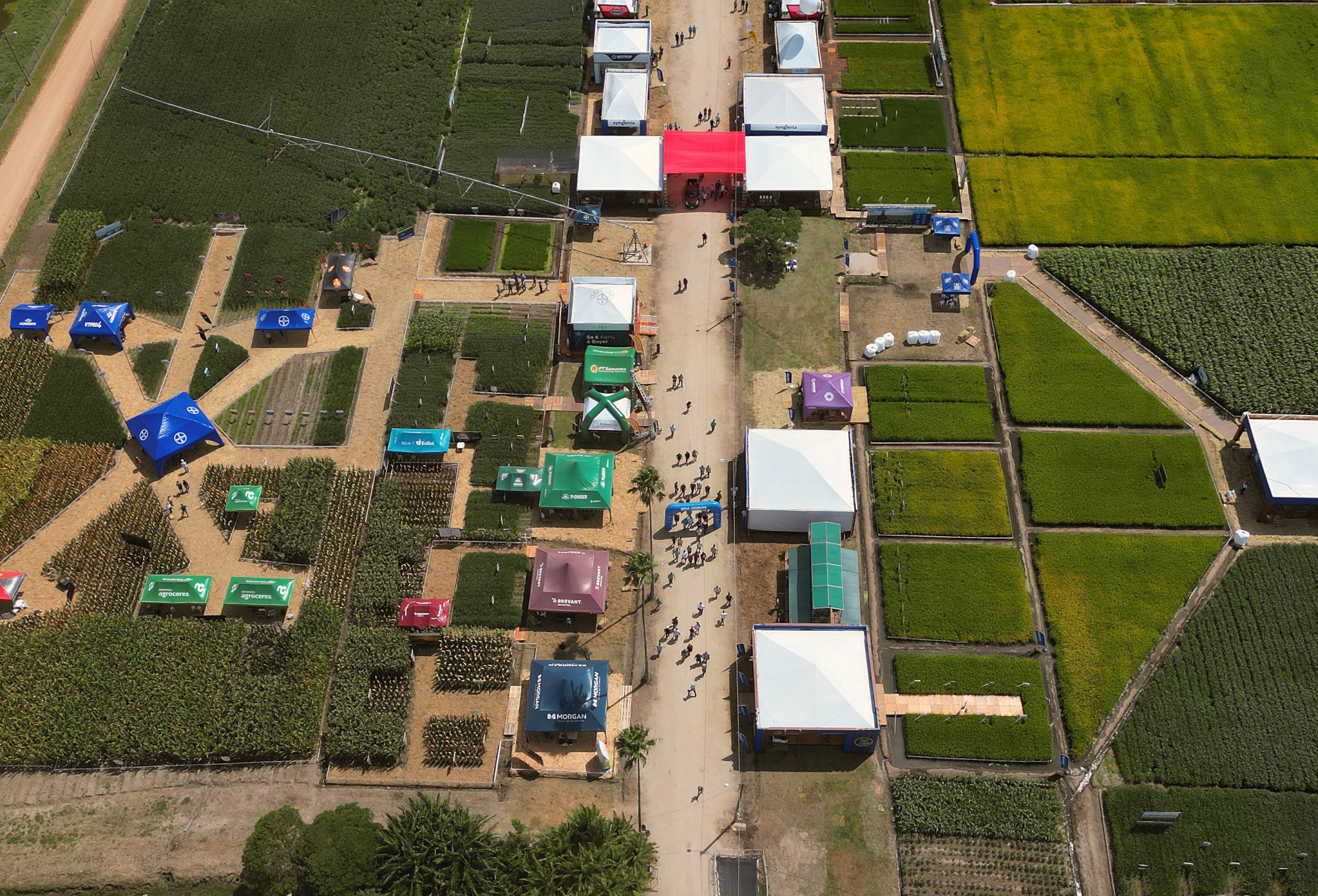 Espaço reúne mais de 50 empresas com foco em manejo do arroz e culturas em rotação durante a Abertura da Colheita do Arroz, em Capão do Leão (RS).
